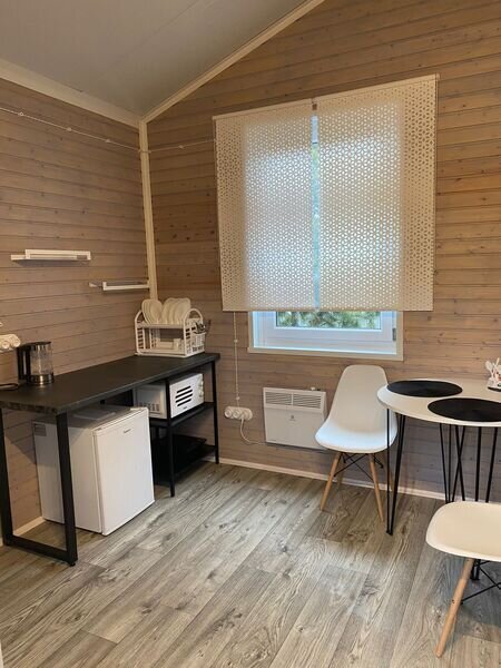 Отличная мангальная зона. Администратор следит за соблюдением тишины в ночное время,это здорово,нет шума,можно выспаться. Очень любим эту базу отдыха.НедостаткиНе работал холодильник, приезжаем не первый раз в этом году,а холодильник не исправен повторно. Не в достаточном количестве для гостей полотенца -всего 4шт.,хотя дом рассчитан на вместительность до 12 человек. Отсутствие вайфая, так же неприятным сюрпризом было то,что отопление в доме нам выключили ночью, наверное в целях экономии,а выезжали в 12 часов дня. Было прохладно,осень ведь.
