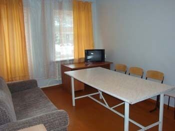 - большая гостиная комната (S=30 кв. м) с мягкой мебелью и спутниковым TV, холодильником, электроплитой, микроволновой печью, электрочайником, которая при необходимости оборудуется тремя дополнительными спальными местами