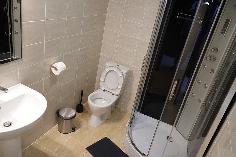 4 спальных места. Удобная двуспальная кровать с прикроватной тумбочкой + 2 полуторные кровати, ванная комната с тропическим душем, кондиционер, ТВ, холодильник.