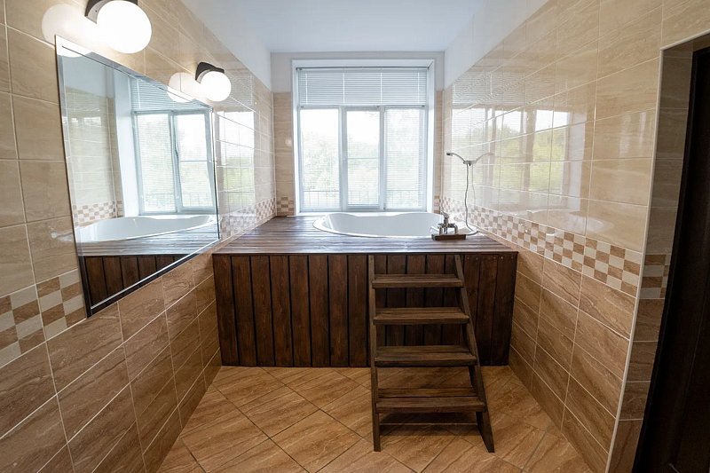 Тип бассейна: крытый бассейнРядом с бассейном: шезлонгиРазмеры: 6 x 7 мПлощадь: 42 м²Бассейн-купель. Идеальное место, чтобы охладится после жаркой бани.