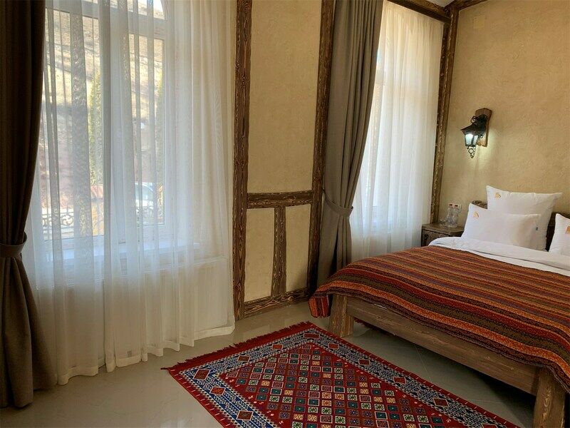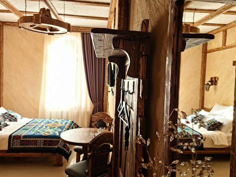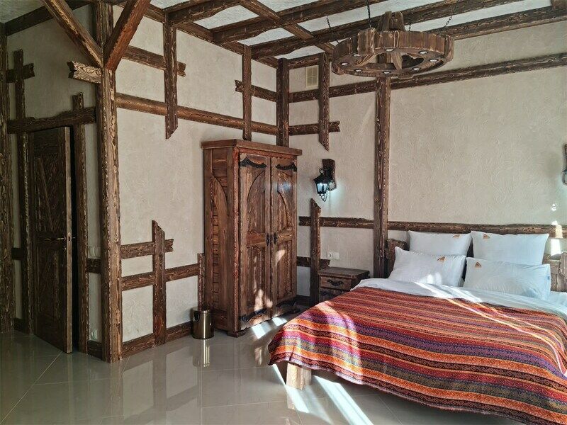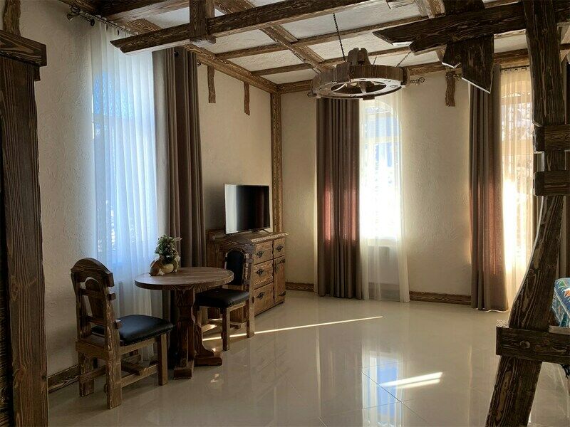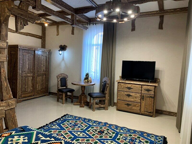 Номер Люкс состоящий из просторной гостиной и изолированной спальни. Здесь есть все для комфортного отдыха семьей или большой компанией — удобный диван, телевизор, обеденный стол, комод, набор посуды и чайная станция. В спальне туалетная комната с джакузи и гостевая туалетная комната. «Фишка» номера — два балкона в гостиной и балкон в спальне с видом на Аликоновское ущелье. Здесь можно отдохнуть, любуясь роскошным видом на горы и горную речку, а в беседке у реки возможно устроить вечеринку с барбекю. Интересный вариант для молодоженов.