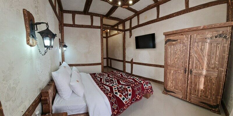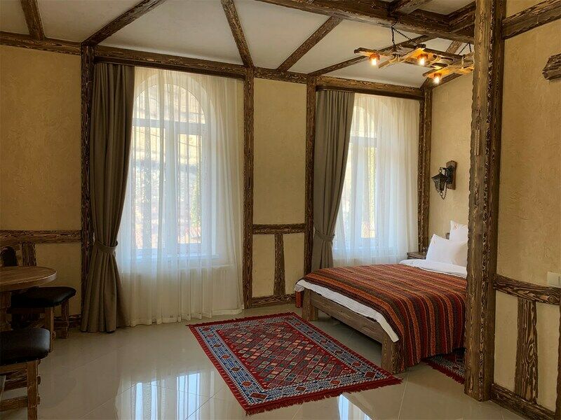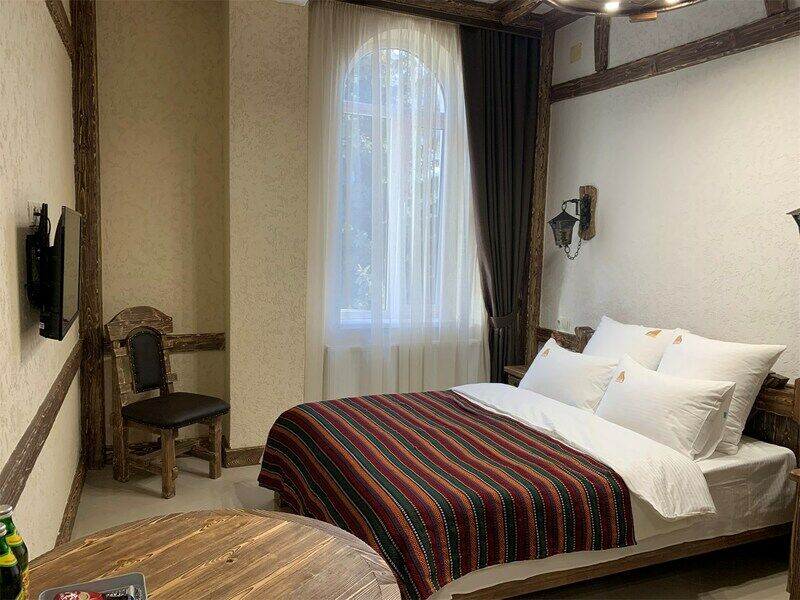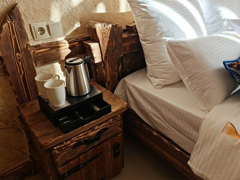 Однокомнатный номер Стандарт с балконом. Здесь есть все для комфортного отдыха телевизор, чайная станция, туалетная комната. «Фишка» номера — балкон с видом на ущелье. В стоимость номера входит аренда беседки у реки, где возможно устроить вечеринку с барбекю