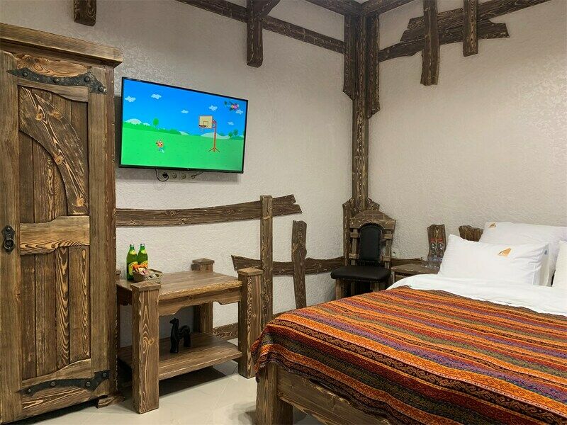 Однокомнатный номер Комфорт. Здесь есть все для комфортного отдыха телевизор, круглый стол на 2 персоны, чайная станция, туалетная комната, халаты и тапочки. В стоимость номера входит аренда беседки у реки, где возможно устроить вечеринку с барбекю. Интересный вариант для молодоженов.