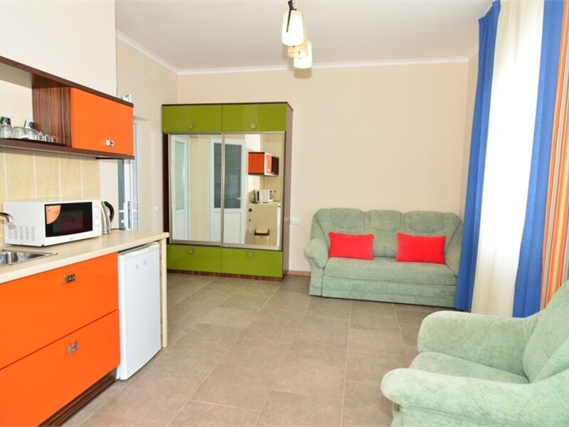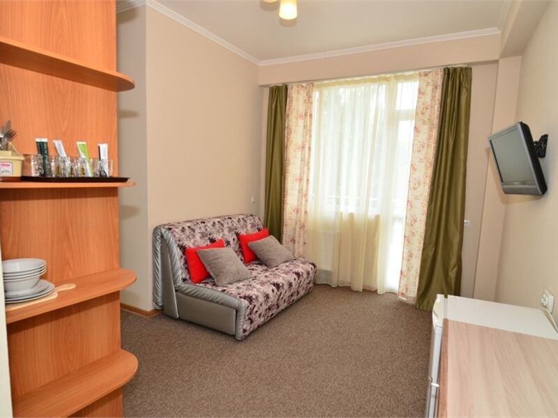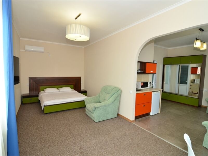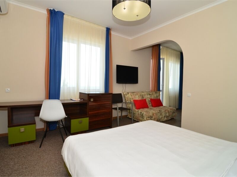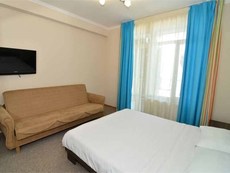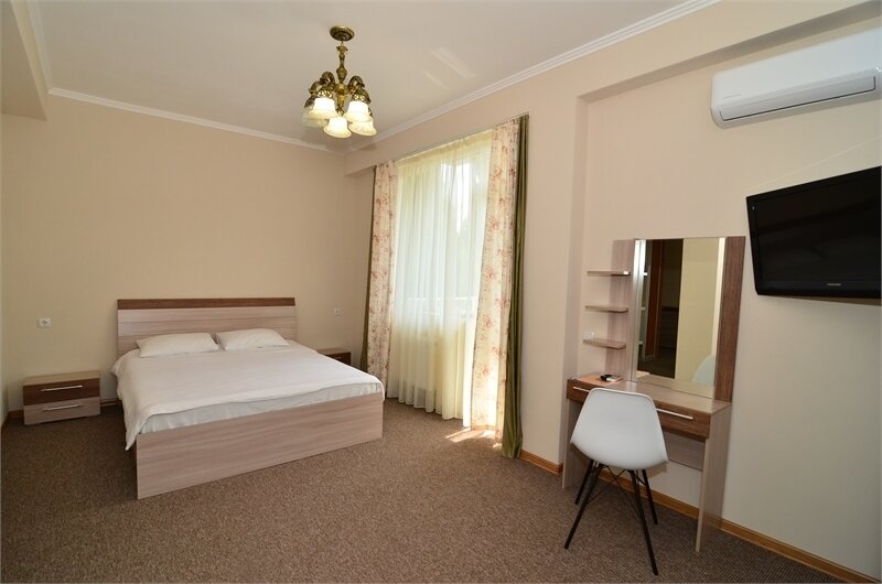 Отель представляет собой 5-этажный корпус, в котором одновременно могут расположиться 70 гостей. Комфортабельные и просторные номера укомплектованы необходимой мебелью и оборудованы современной бытовой техникой.
