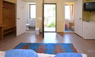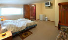 В номере 1 комната, двуспальная кровать, прикроватные тумбочки, вешалка для одежды, столик, пуфик, зеркало, санузел с душем.