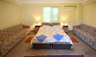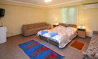 В номере 1 комната, двуспальная кровать, прикроватные тумбочки, диван, вешалка для одежды, столик, пуфик, зеркало, санузел с душем.