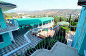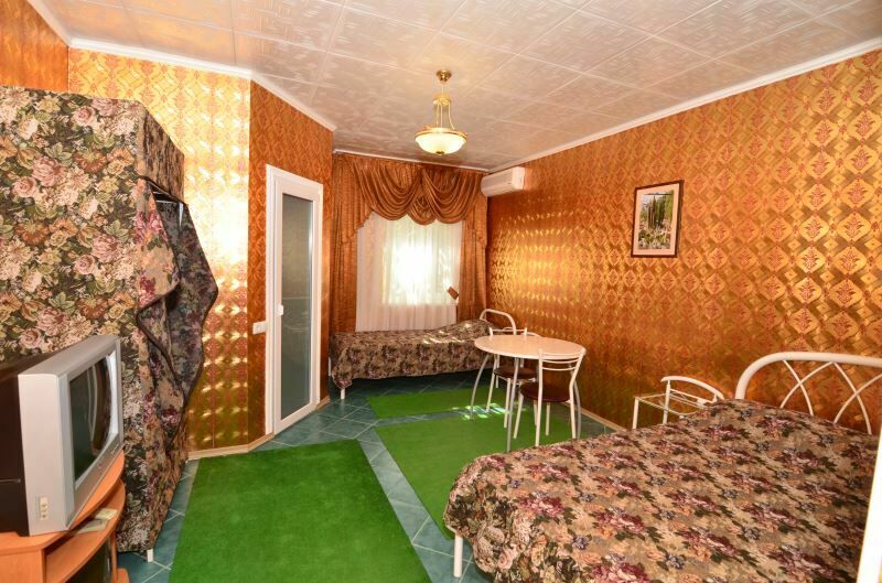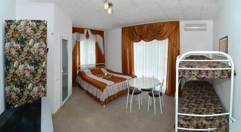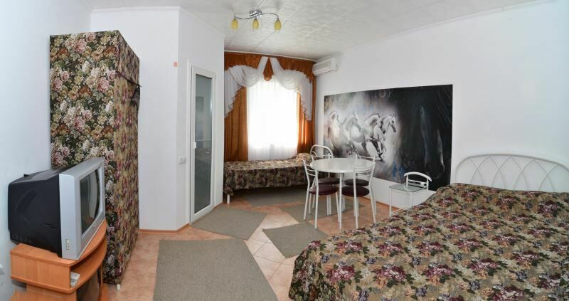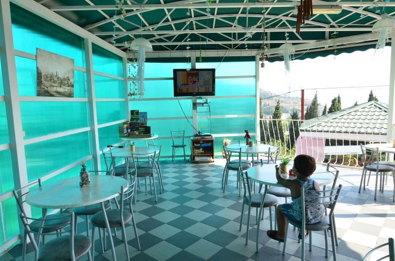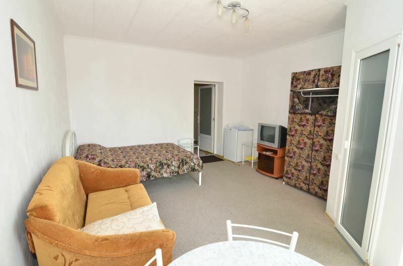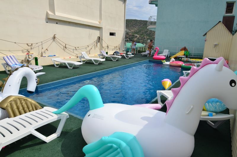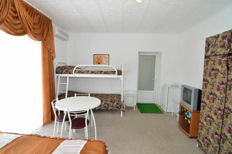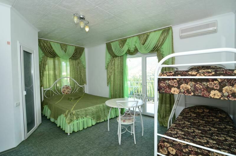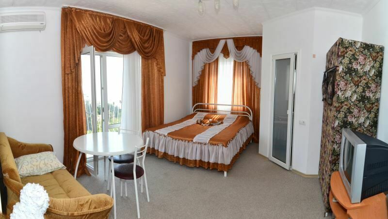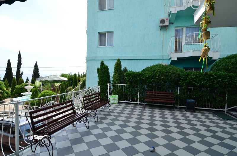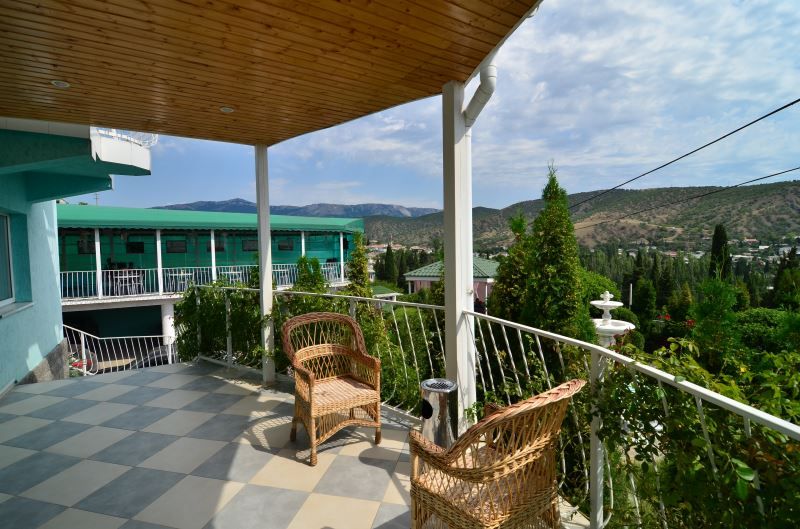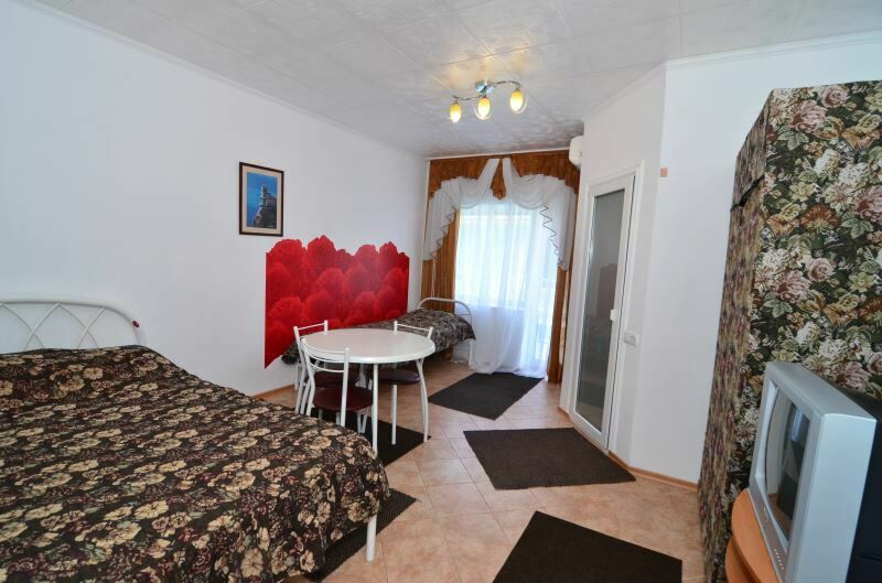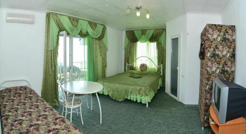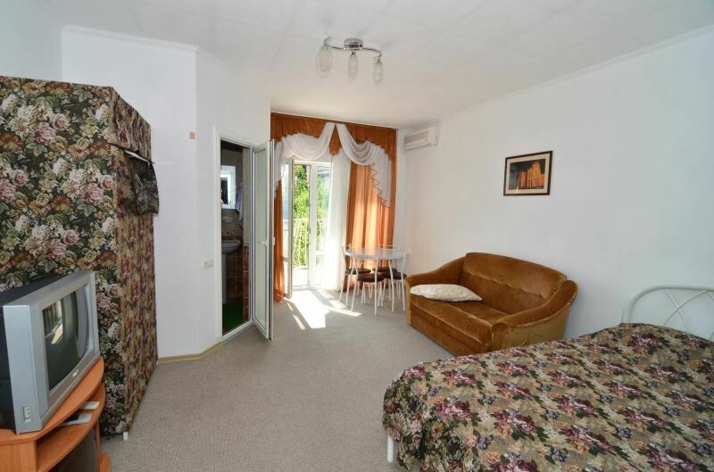 Трехэтажный корпус отеля (без лифта) занимает озелененную благоустроенную территорию с небольшим фонтаном в центре. Гостей ожидают двухместные номера Стандарт с видом на море или Крымские горы. Во всех номерах есть душ, телевизор, кондиционер, на 2-м и 3-м этажах предусмотрены балконы.