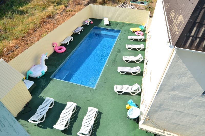Тип бассейна: открытый бассейнВода в бассейне: бассейн с морской водойРядом с бассейном: шезлонгиБеседки