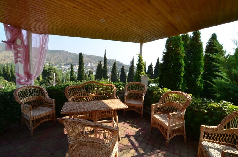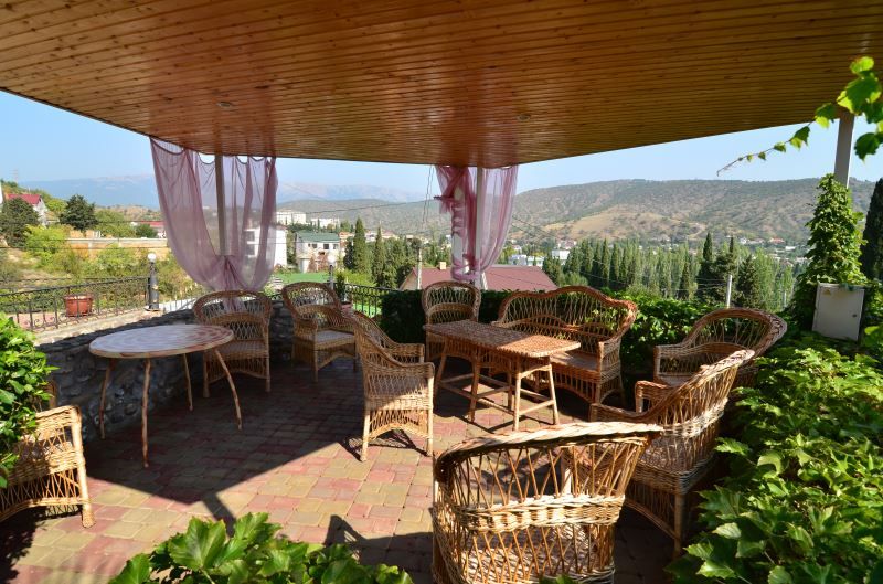 Тенистые беседки с плетеной мебелью. Здесь в окружении стройных кипарисов, ярких цветов и других зеленых насаждений, вы можете отдохнуть в компании друзей или родных, любуясь красотой морских и горных пейзажей и вдыхая свежий воздух, наполненный запахом моря и хвои. Такой отдых подарит вам ощущение покоя и умиротворения.