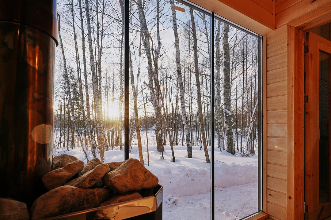 Отдых в клубе — это не только крепкий сон в тишине, но и прогулки по лесной опушке под пение птиц, рыбалка с моста, соединяющего берега озера, приготовление блюд на мангале и просмотр фильмов на большом экране прямо в домике.