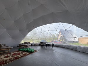 Инфраструктура: зона отдыха, чай/угощенияНа территории глэмпинга есть баня, где вы сможете отдохнуть в специальной комнате и попариться с потрясающим видом на природу, так как у бани панорамное окно.