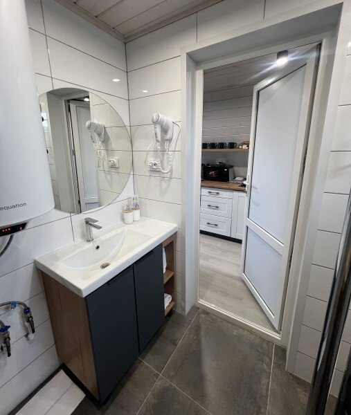 Удобные кровати, набор посуды для приготовления еды, теплый пол, кондиционер и автономный обогрев — всё для вашего комфорта в любую погоду.