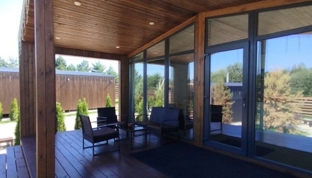 Предлагаем Вашему вниманию современный и стильный дом №3 с панорамным остеклением, продуманным интерьером и комфортным техническим оснащением. Домик рассчитан на комфортное проживание от 2 до 3 гостей, с террасой и мангальной зоной с навесом.