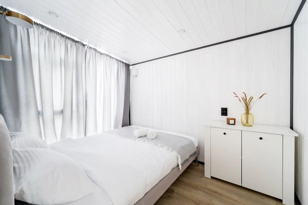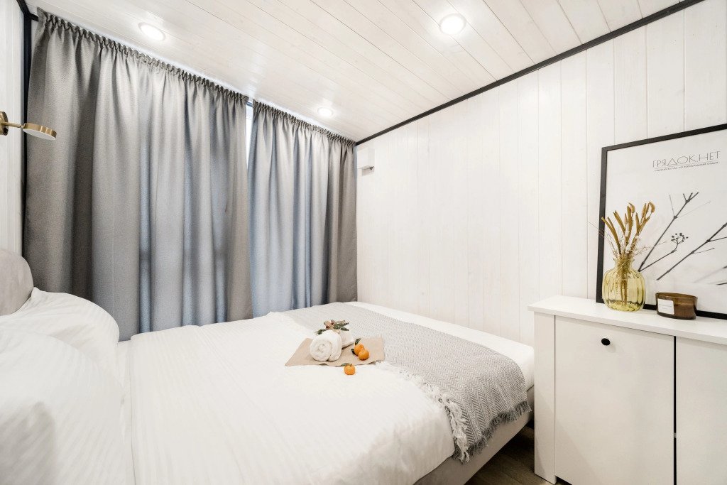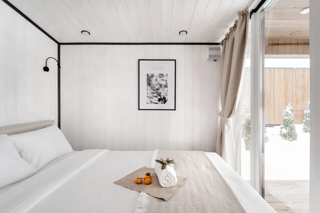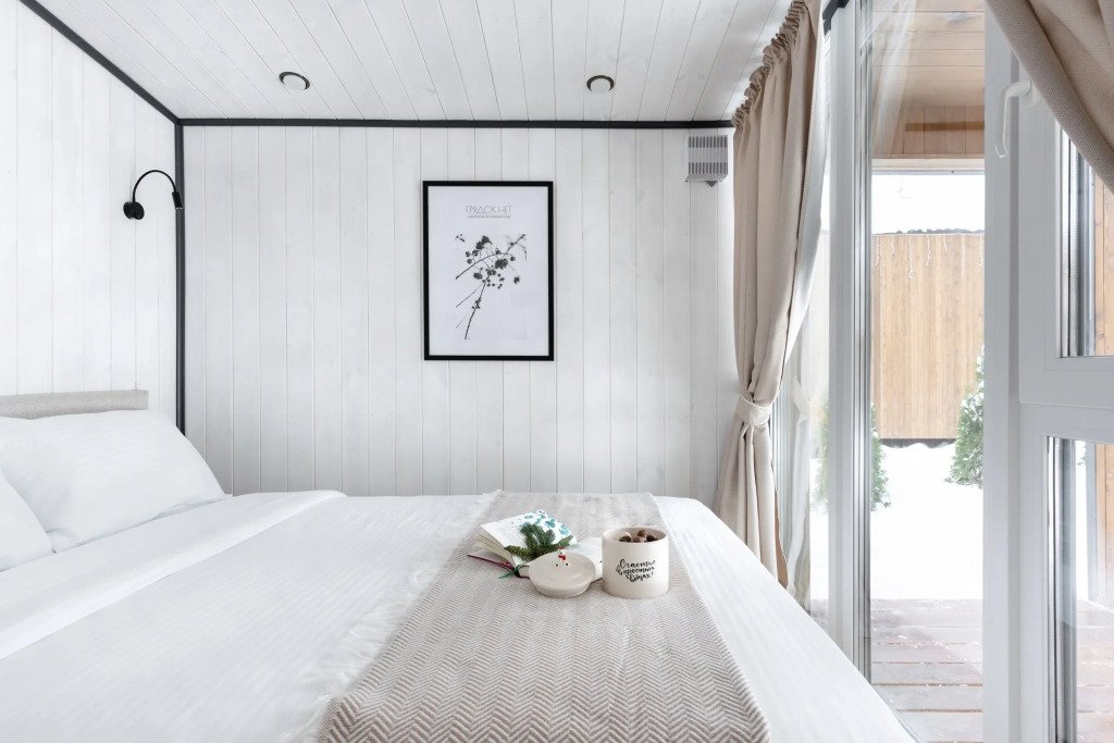 Двухместный коттедж с красивым видом из окна двуспальная кровать