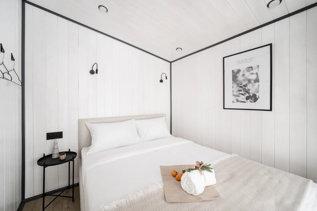 Предлагаем Вашему вниманию современный и стильный дом №4 с панорамным остеклением, продуманным интерьером и комфортным техническим оснащением. Домик рассчитан на комфортное проживание от 2 до 6 гостей, с террасой и мангальной зоной с навесом.