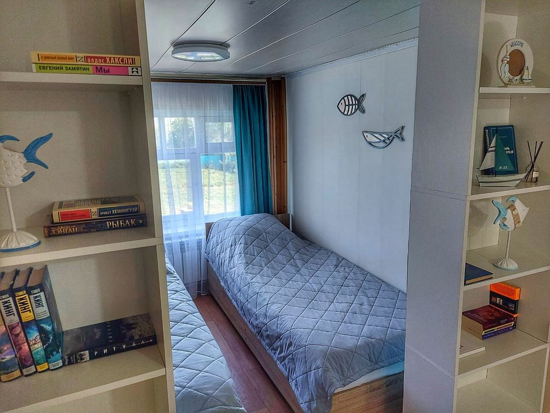 Стильный и просторный однокомнатный номер с удобными кроватями, телевизором и библиотекой. Идеально подходит для двух гостей.