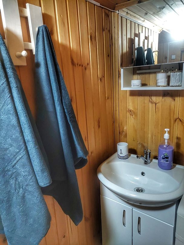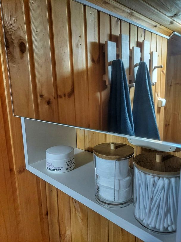 Инфраструктура: душГостям предоставляется возможность насладиться теплом настоящей русской дровяной бани, где они могут расслабиться и восстановить силы. Для ещё большей релаксации доступны соляные брикеты с эфирным маслом эвкалипта, а также душевая для комфортного завершения процедуры.