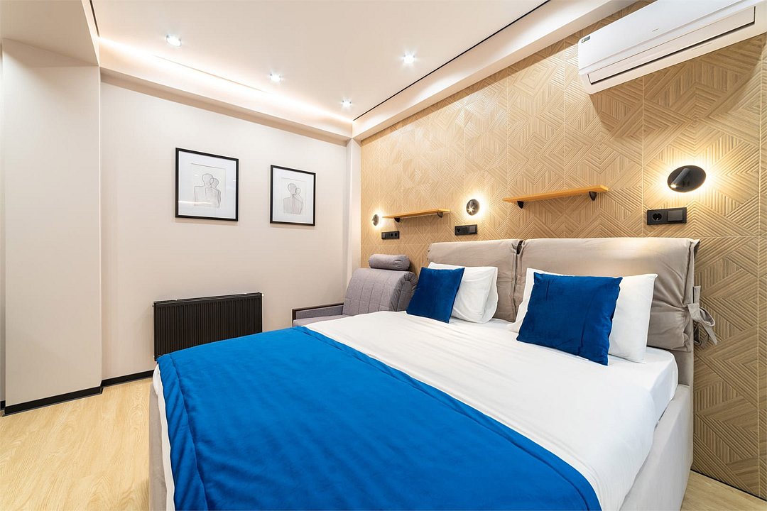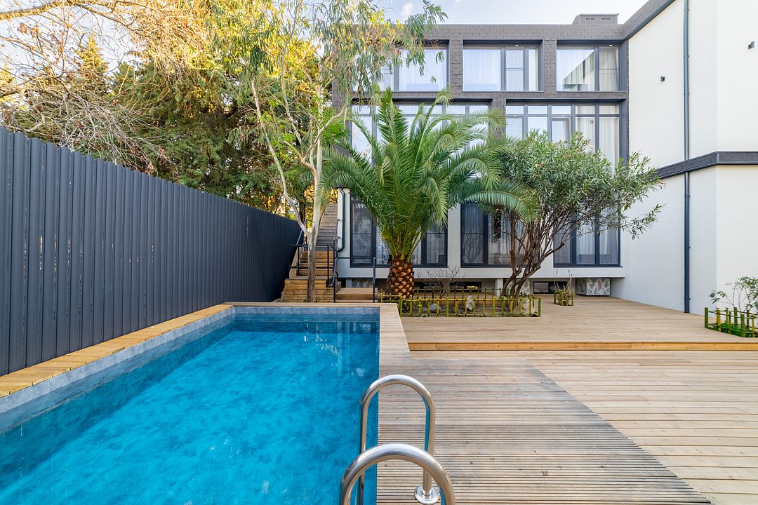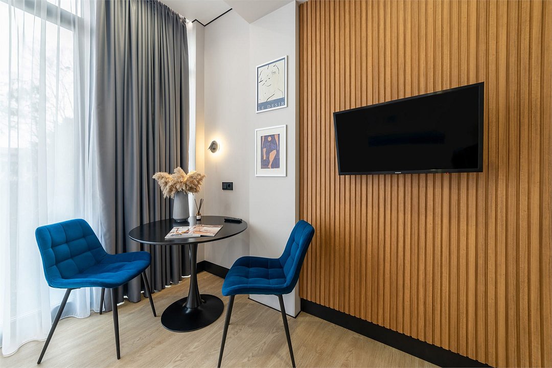 Трехэтажный отель предлагает 37 роскошных номеров, предназначенных для обеспечения максимального комфорта гостей. В комнатах есть вся необходимая техника, мебель, работает Wi-Fi. В каждом номере предусмотрен собственный санузел с косметическими принадлежностями и полотенцами. В некоторых номерах для самостоятельного приготовления еды есть оборудованная кухонная зона. Постояльцы могут наслаждаться уютным внутренним двориком и превосходным бассейном, где можно отдохнуть, любуясь красивым закатом, или укрыться в тени хвойных деревьев в жаркий день.