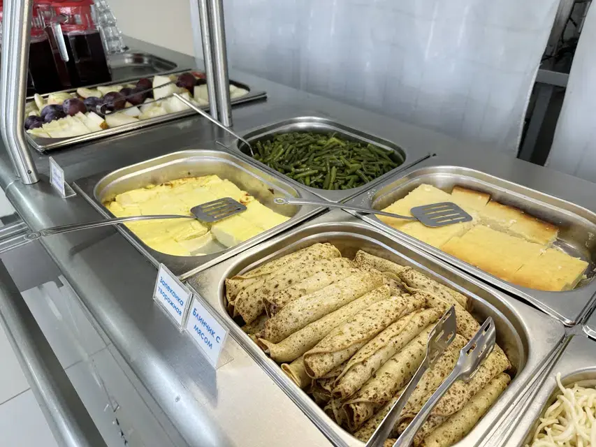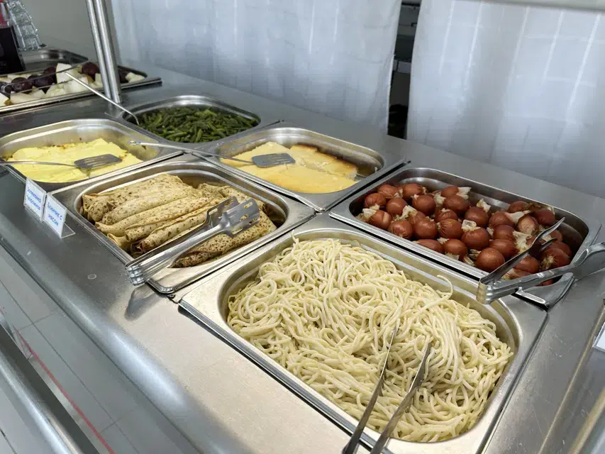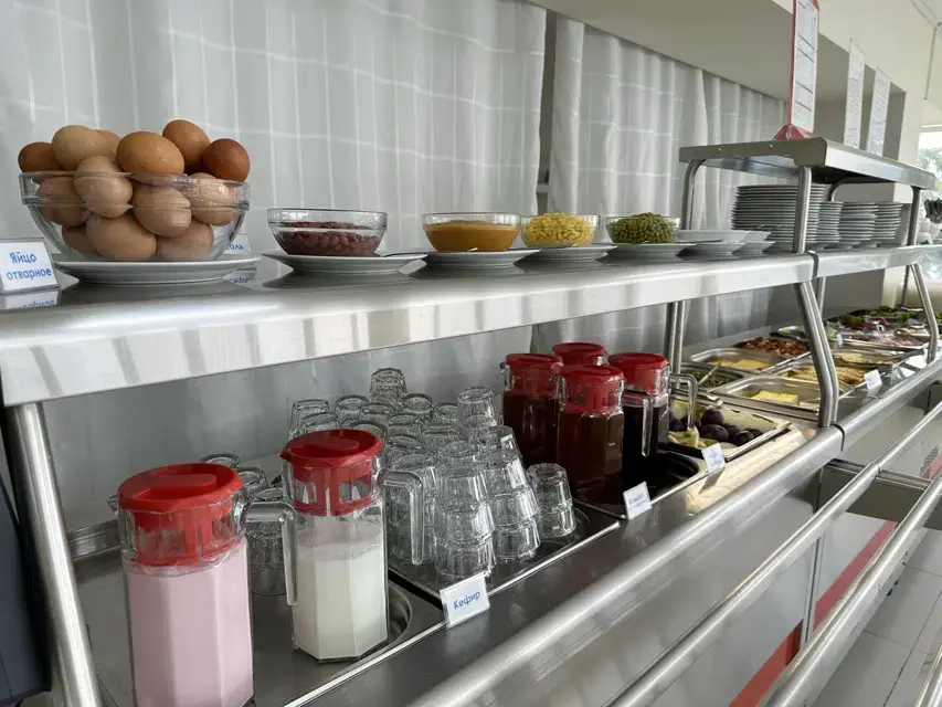 Есть возможность обедать и ужинать по меню в столовой- удобно. Цены приятные.