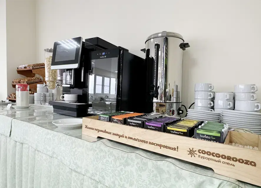 На территории Курортного отеля COOCOOROOZA вы можете завтракать, обедать и ужинать в собственной столовой, расположенной на 3 этаже с видом на море.