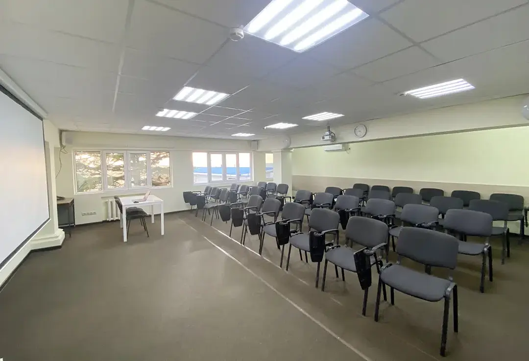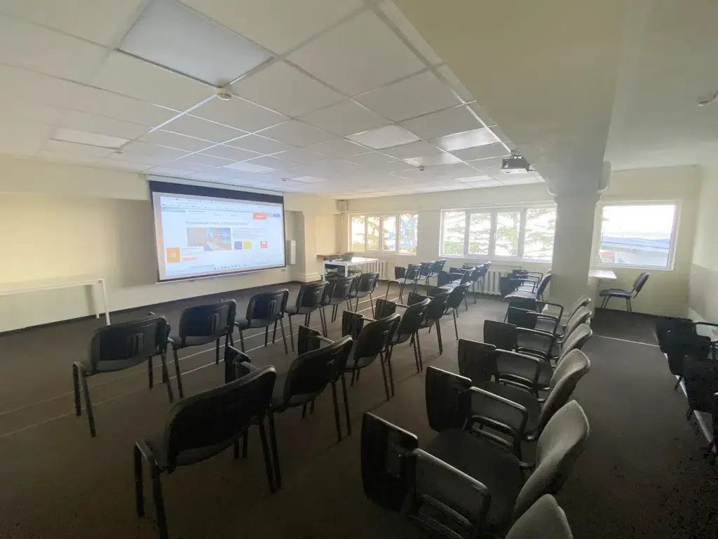 Читать полностьюВ конференц-зале с комфортом могут разместиться до 50 человек. Площадь зала составляет 60 кв. м.