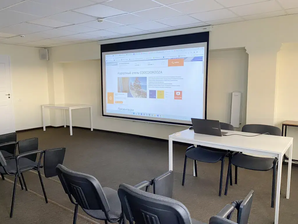 В конференц-зале есть все необходимое для проведения деловых встреч, мероприятий, семинаров, презентаций и совещаний. В зависимости от расстановки мебели зал можно трансформировать согласно характеру и задачам мероприятия. Вы можете провести мероприятие в любое удобное для вас время, включая праздничные и выходные дни.