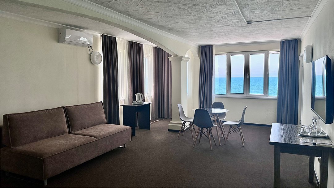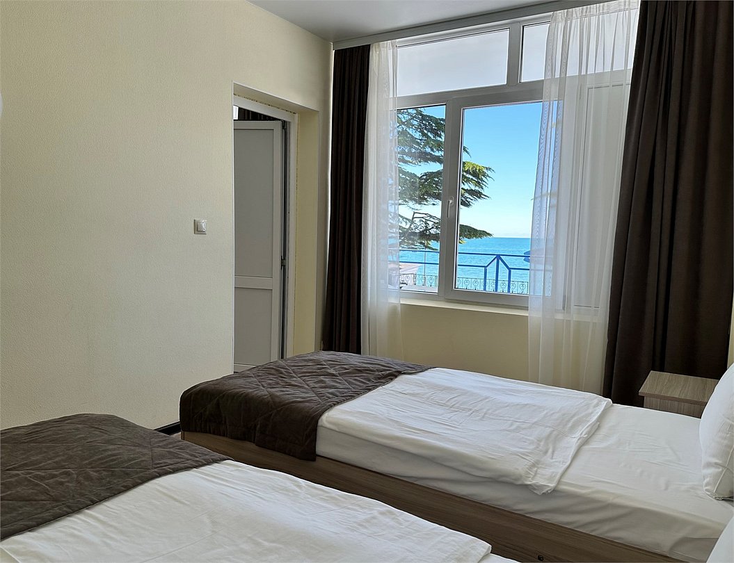 2-комнатный просторный номер с видом на море. В холле 3 этажа расположены: • Гладильная доска. • Утюг. • Вода питьевая.Услуги и удобства