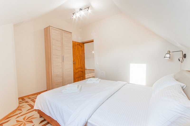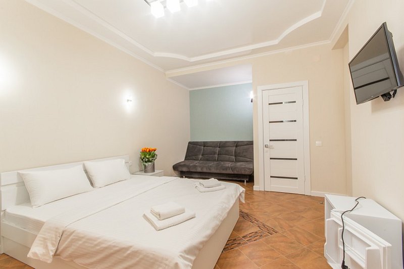 Номер оборудован всем необходимым для комфортного проживания каждого гостя: ТВ с плоским экраном, двуспальная кровать, раскладной диван, постельное белье, минибар, отдельный санузел, кондиционер, бесплатный WI-FI на всей территории, полотенца, посуда.