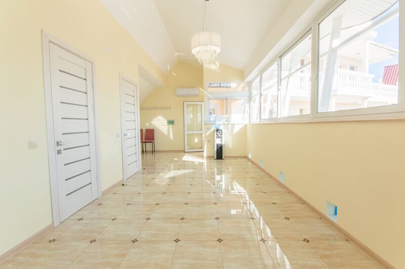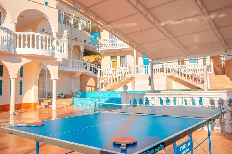 Гостиничный комплекс занимает небольшую благоустроенную территорию площадью 1000 кв.м. и включает в себя три 3-х этажных корпуса без лифта. Жилой фонд предлагает отдыхающим уютные светлые номера, каждый из которых выходит на красивый панорамный балкон. Номера оснащены всем необходимым — есть индивидуальный санузел, кондиционер, плазменный телевизор, комфортная мебель.