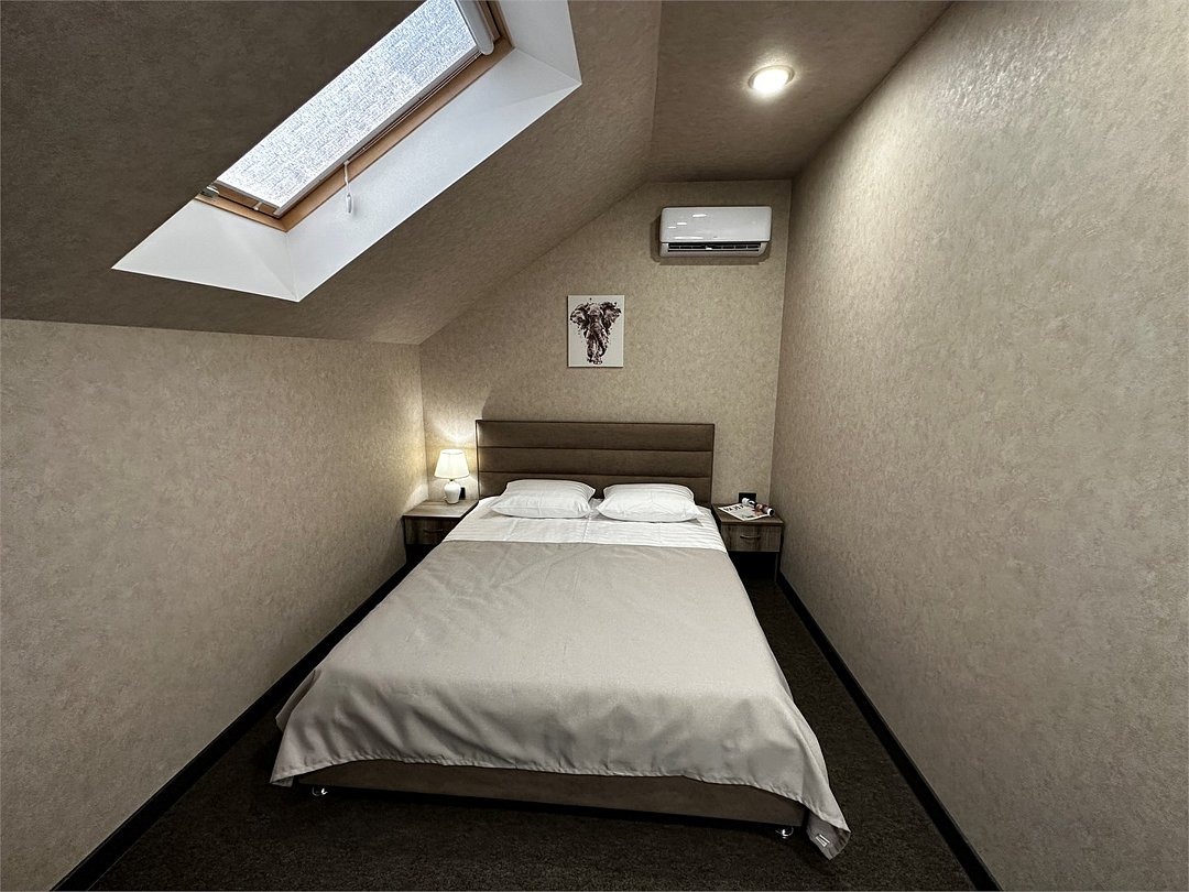 Стандартный Эконом с 1 большой или 2 раздельными кроватями и мансардным окном. Номер оборудован сан. узлом с душевой кабиной. В номере имеется косметический столик, шкаф, сейф, телевизор. Номера расположены на последнем этаже здания.Услуги и удобства