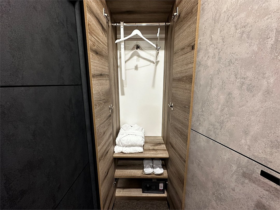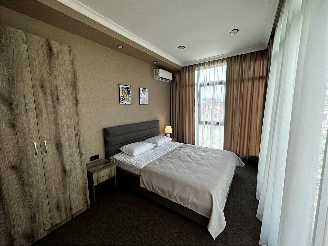 спутниковое телевидение, Wi-Fi, кондиционер, фен, электронные замки, душевая кабина, банные полотенца, балкон, двуспальная кровать, шкаф для одежды, гардеробная, вешалки, зеркало, комод, унитаз, вид на город, вид во двор, стул, тумба, туалетные средства, сплит-система, панорамные окна, цифровое тв, телевизор с плоским экраном, мини-холодильник, без питомцевВ гостиничном номере