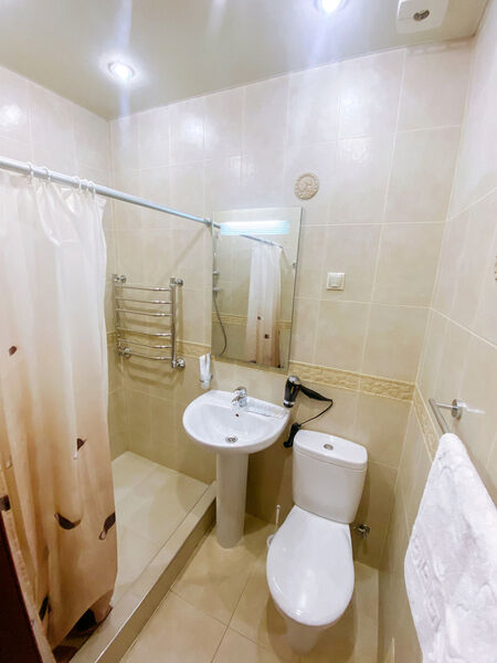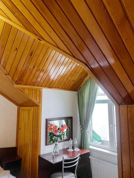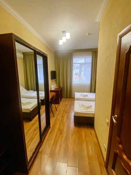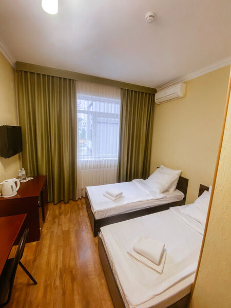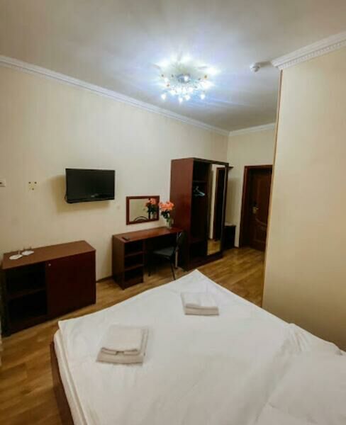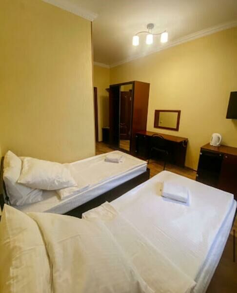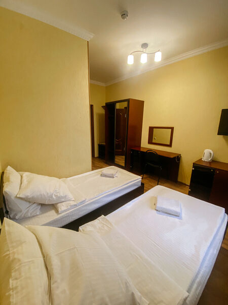 Номера комфортабельные и просторные, а спокойная и уютная атмосфера поможет расслабиться и полноценно отдохнуть. В каждой комнате имеется телевизор, функциональная и удобная мебель и санузел.