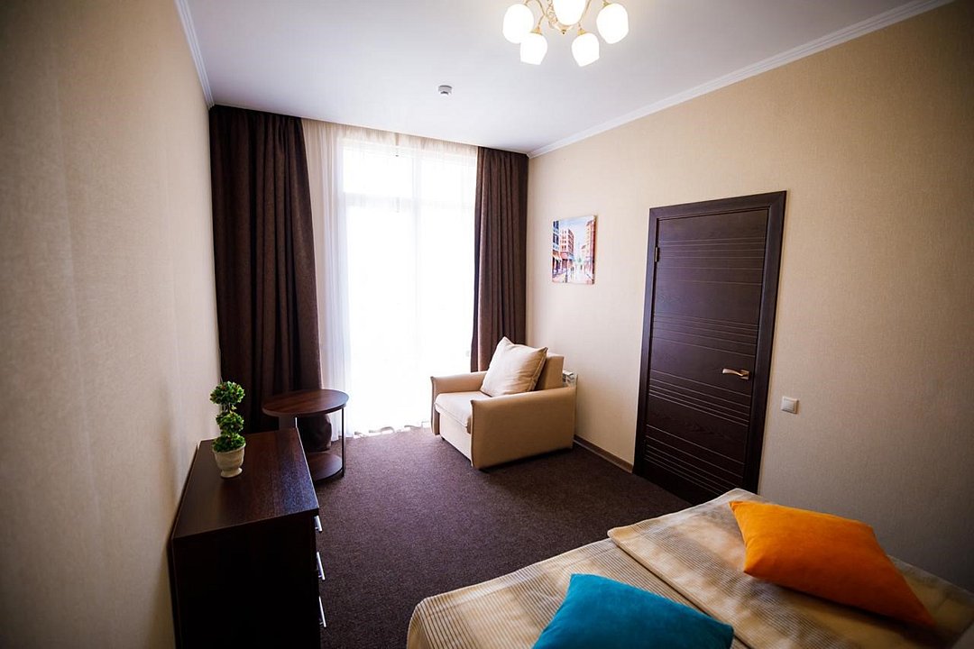 В номере: 1 двуспальная кровать или 2 односпальных кровати, 1-кресло-кровать.