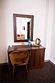 Имеется телевизор, кондиционер, шкаф, вешалки, зеркало, туалетный столик, холодильник, рабочий стол, стулья, чайник.