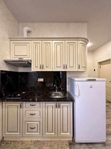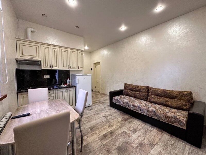 двуспальная кровать, раскладное кресло-кровать, балкон, тв, шкаф, кондиционер, кухня-гостиная (диван двуспальный), кухонный гарнитур, стол, кухонная утварь, холодильник