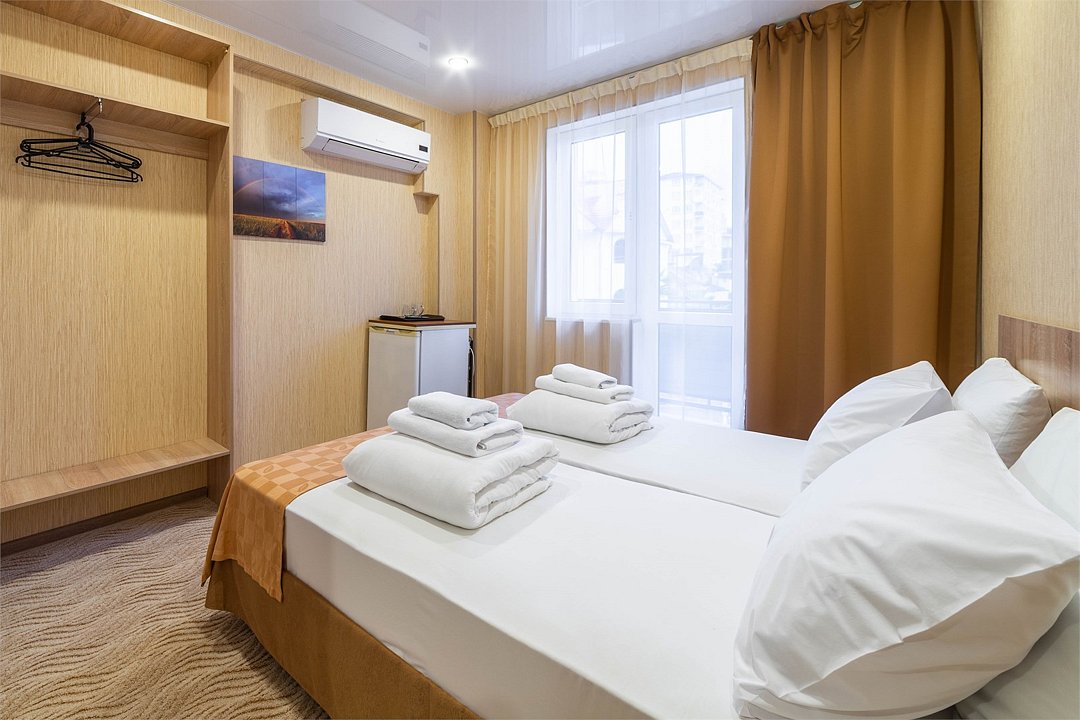 15-17 кв.м, вид на город, расположение номеров: 4 и 5 этажи. Часть номеров оборудованы балконами. Доп. место (раскладное кресло) 190х70 см. Бассейн (без подогрева) работает в период с 1 мая по 30 сентября. Размещение детей с 4-х лет.Услуги и удобства