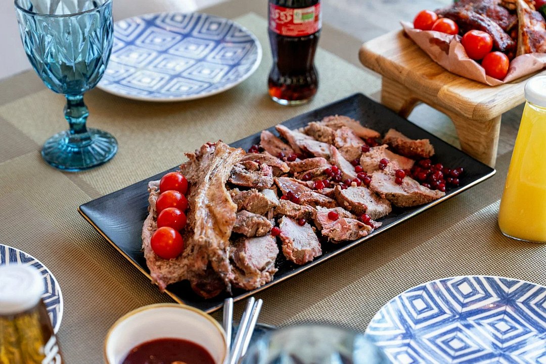 На территории отеля есть зона для барбекю, кафе с широким выбором блюд и бани на дровах. Гости могут поплавать в открытом бассейне.
