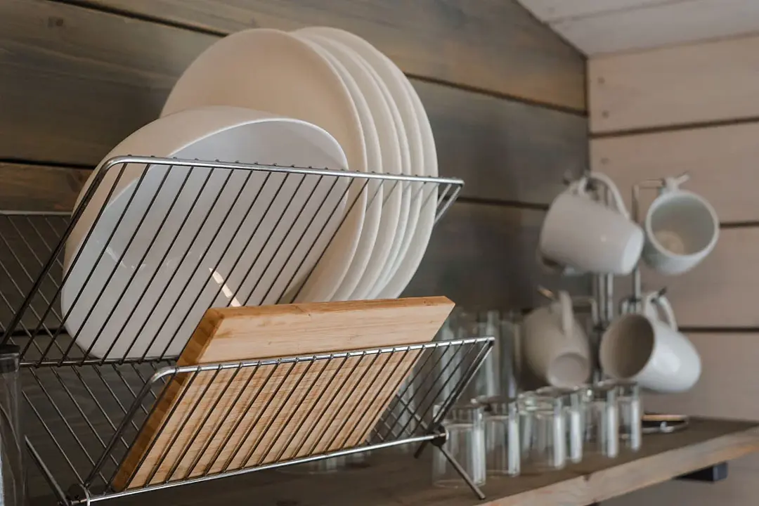 Кухонная зона имеет посуду на 6 персон, микроволновую печь, чайник.