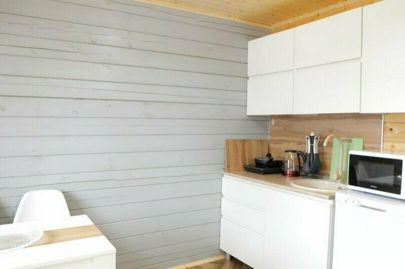 В номере: 1 двуспальный диван и 4 односпальные кровати. Имеется терраса и отдельный вход. Обеденный стол. Кухня, посуда, столовые приборы. СВЧ, чайник холодильник, электрическая плитка. Телевизор, кондиционер, шкаф, вешалка, стулья, корзина для мусора. Индивидуальная ванная комната: душ, раковина, туалет.