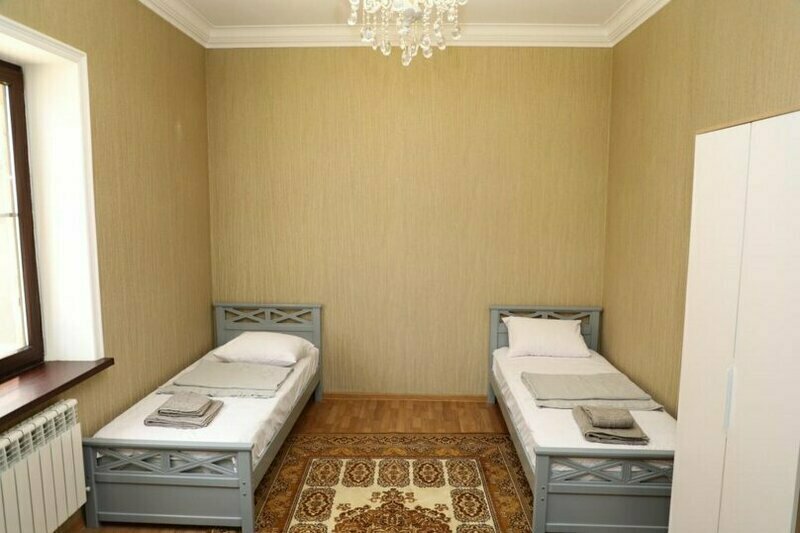 Имеет спальню с приятным интерьером. В номере: 2 односпальных дивана и 1 двуспальная кровать. Имеется отдельный вход. Обеденный и журнальный столики. Кухня, посуда, столовые приборы. СВЧ, чайник, холодильник, электрическая плитка. Телевизор, кондиционер, шкаф, вешалка, стулья, корзина для мусора. Индивидуальная ванная комната: душ, раковина, туалет.