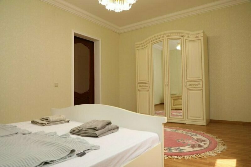 Апартаменты двухкомнатные, площадь 100 м2 с видом во двор. Подходит для размещения 5 человек. Имеет гостиную и спальню с приятным интерьером.