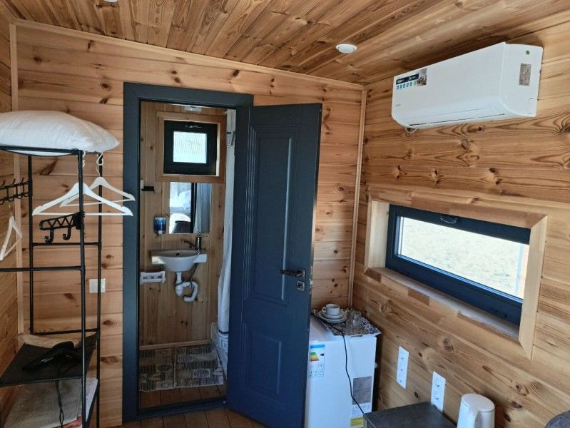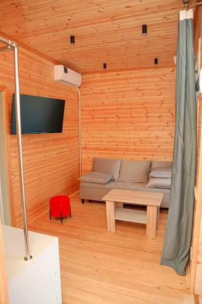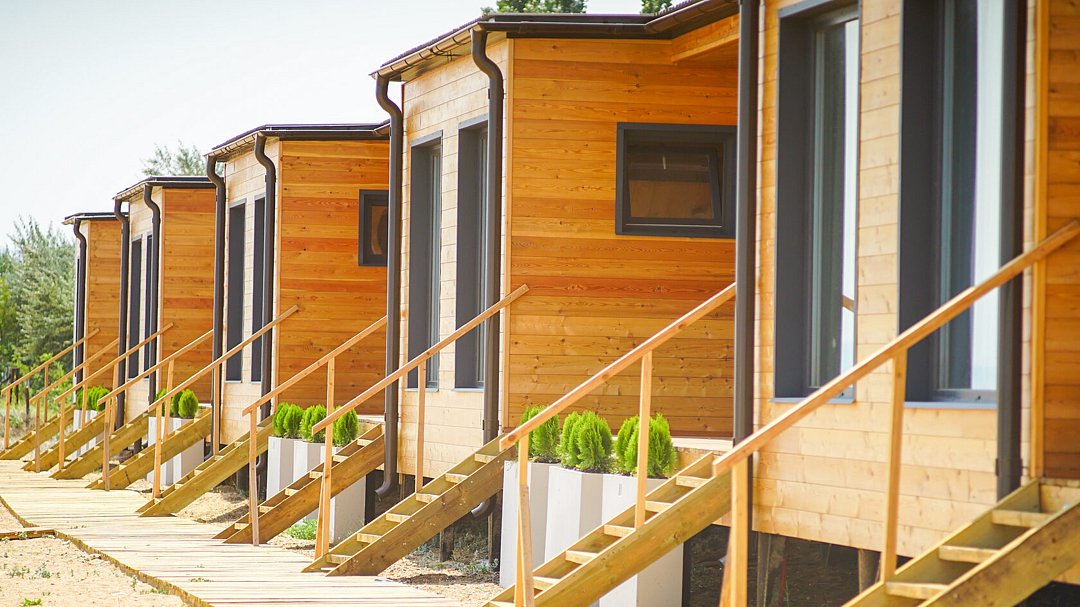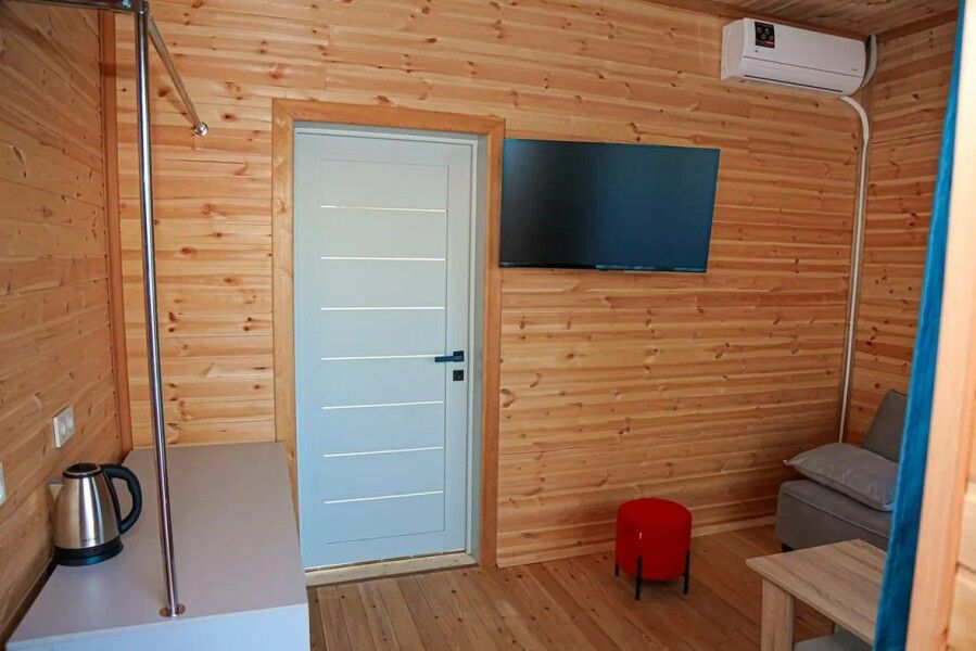 Вид на Каспий открывается из окон всех номером отеля, а для гостей глэмпинга доступны панорамные пейзажи.