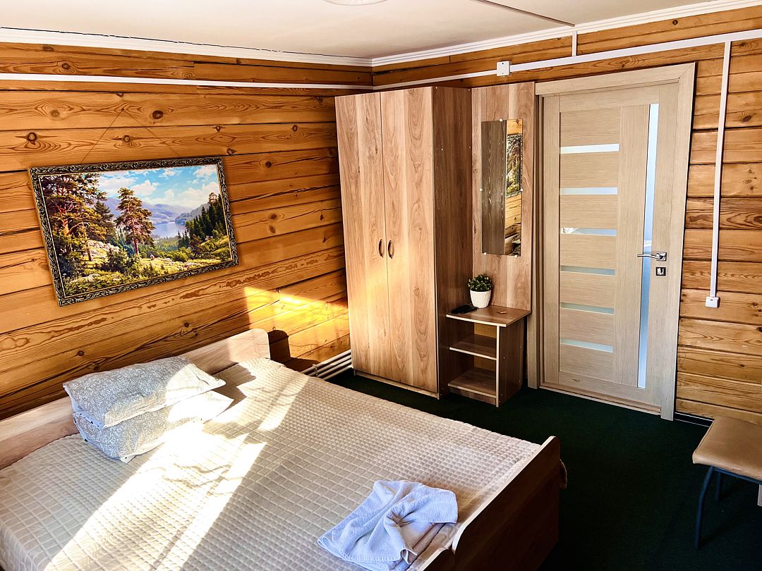 Номера категории «Стандарт двуместный (дом Катунь)» находятся на втором этаже. Номера очень уютные и тёплые.