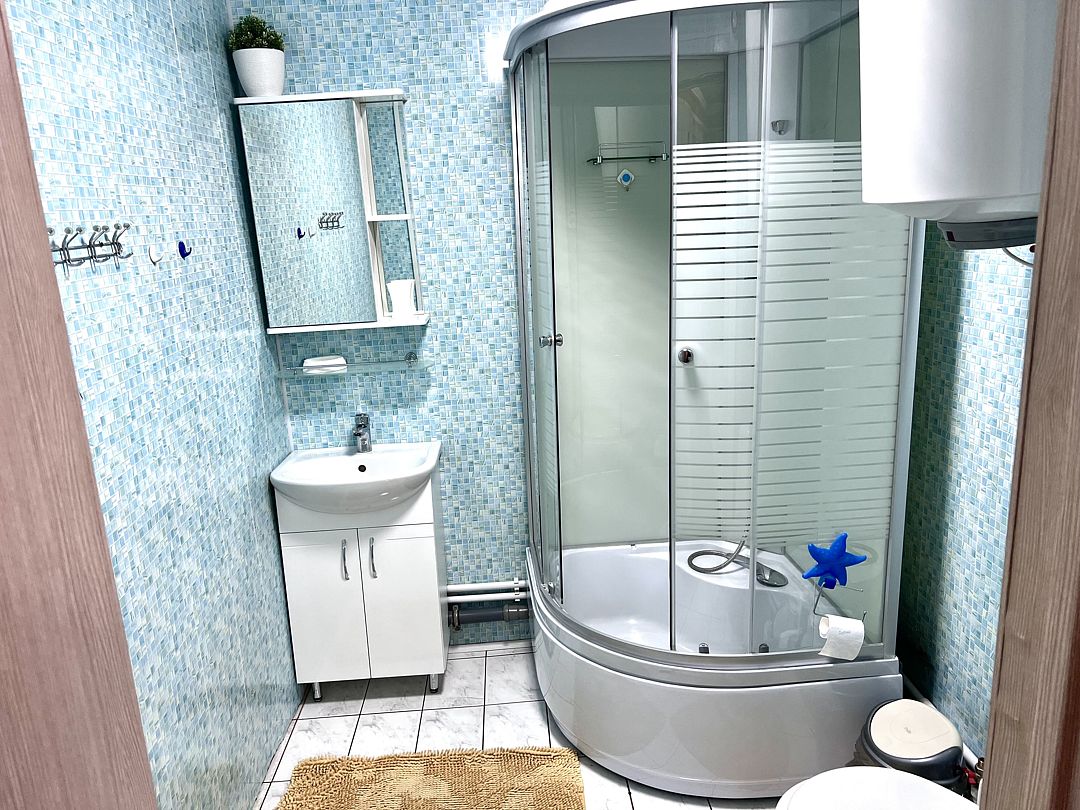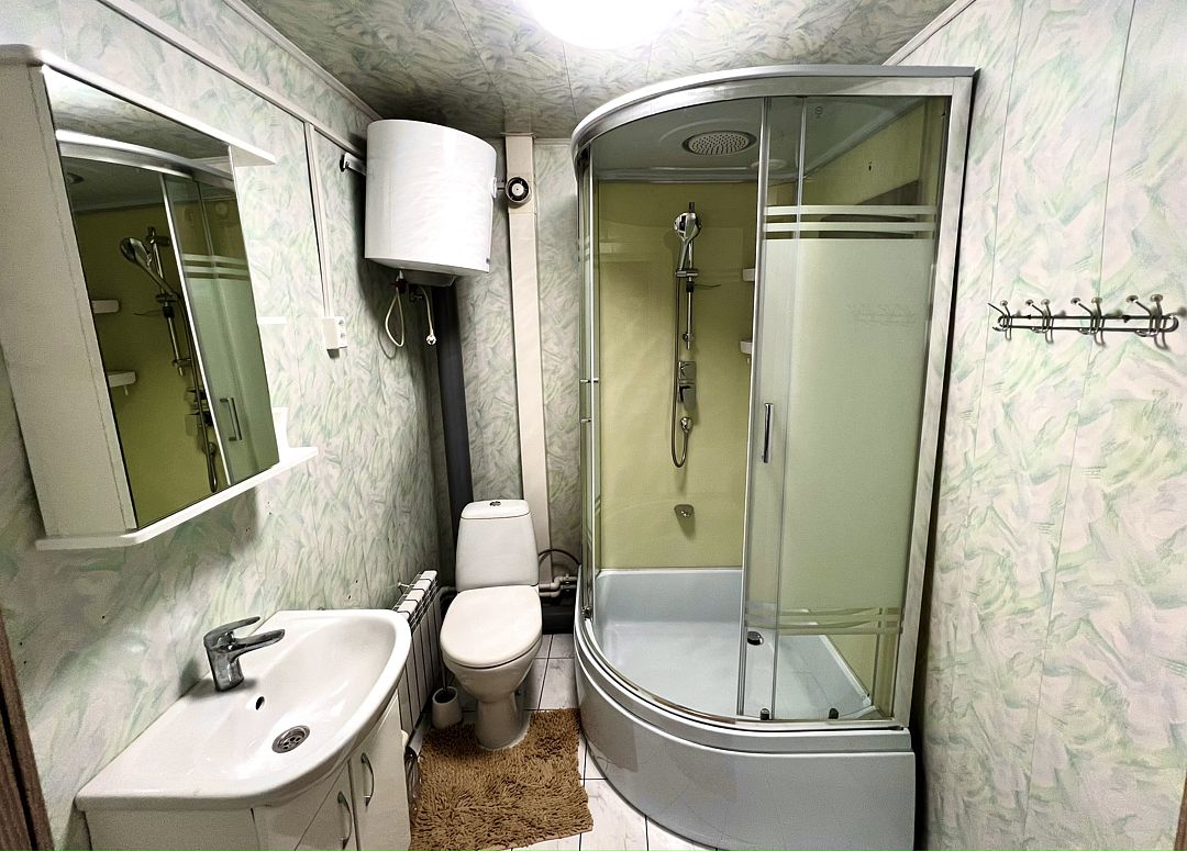 – Собственный санузел с душем, средства гигиены включены (шампунь, мыло, зубные щётки).