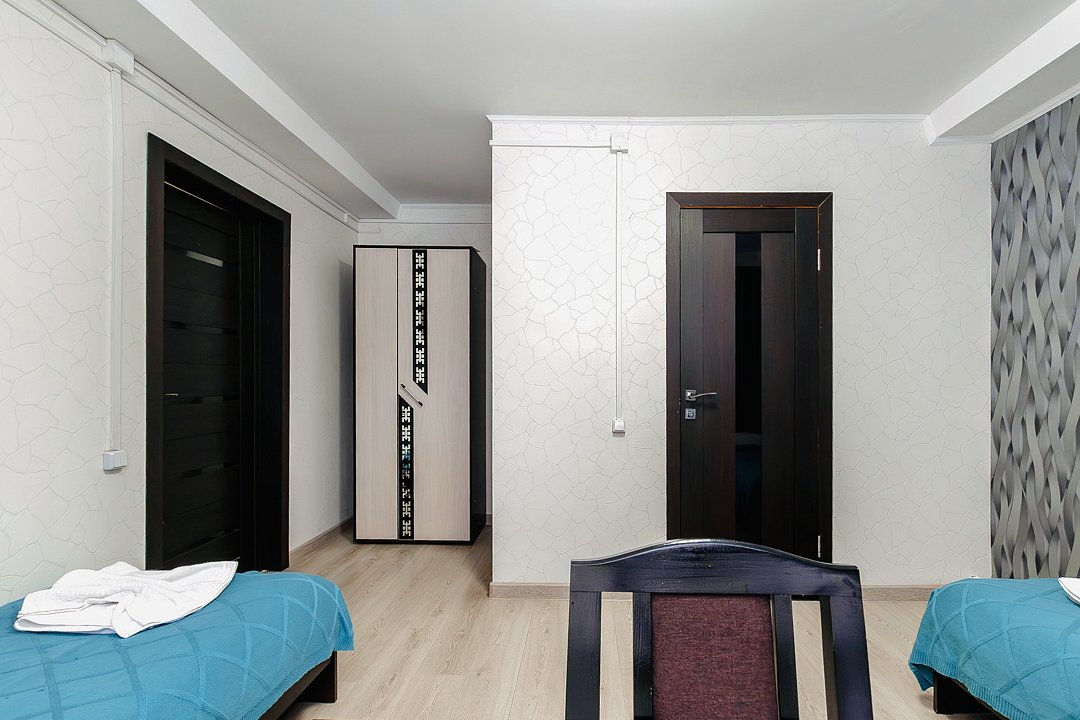 – При необходимости кровати можно сдвинуть вместе или раздвинуть — как удобнее гостям.