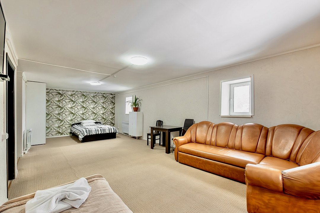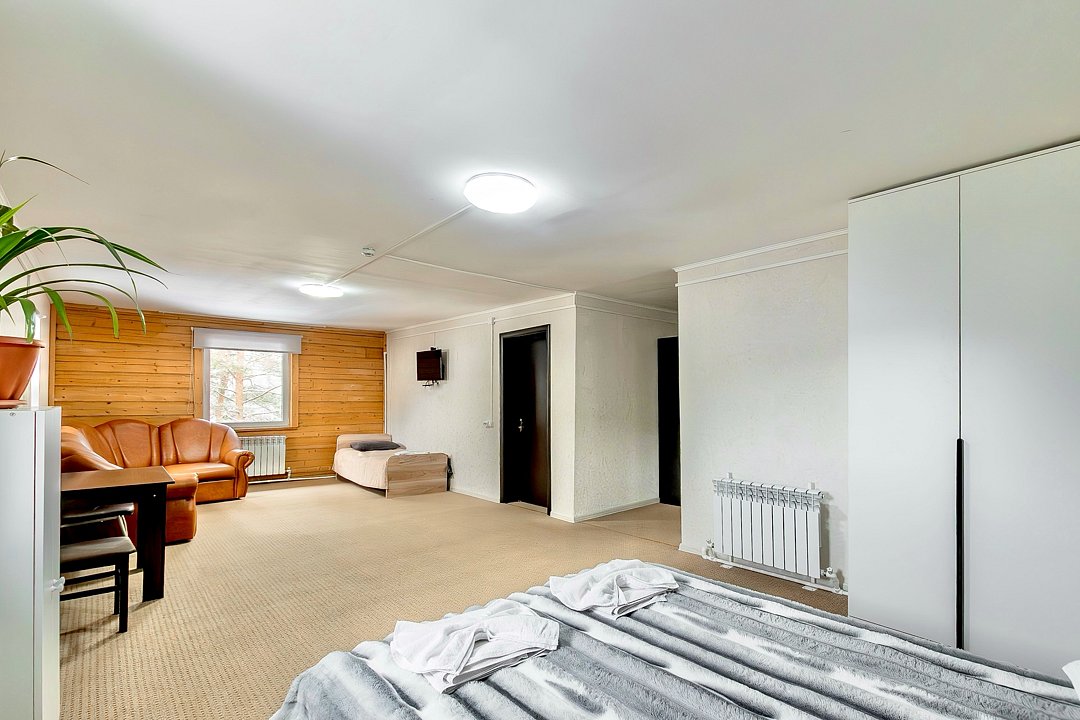 В номере: 1 двуспальная кровать, 1 односпальная кровать, 1 двуспальный диван.