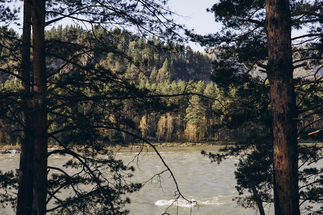 Сосновый лес — Смотровая площадка — Горная речка. Заезд в поселок Озерное. Виды на реку Катунь. Маршрут проходит как по дорогам, так и по бездорожью,