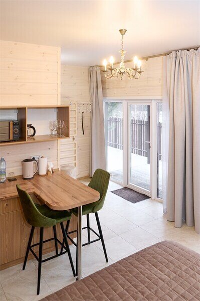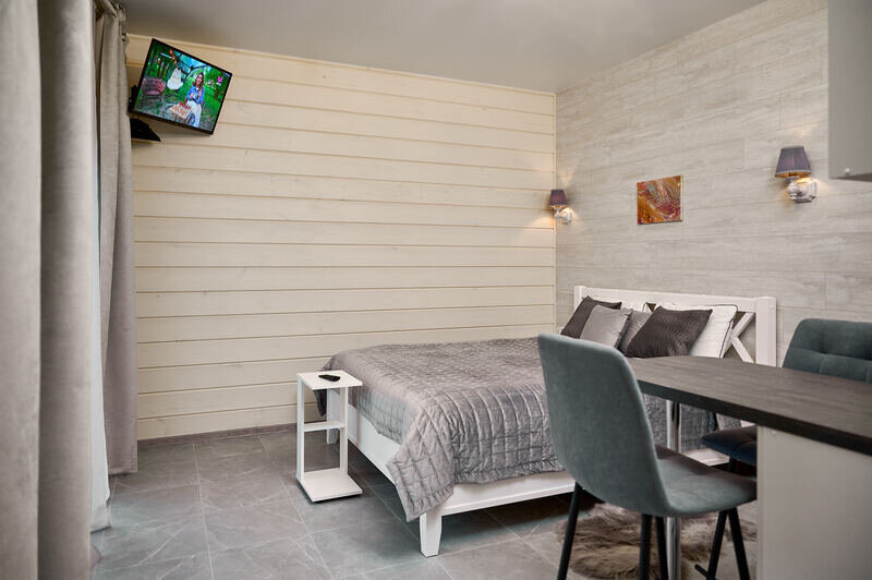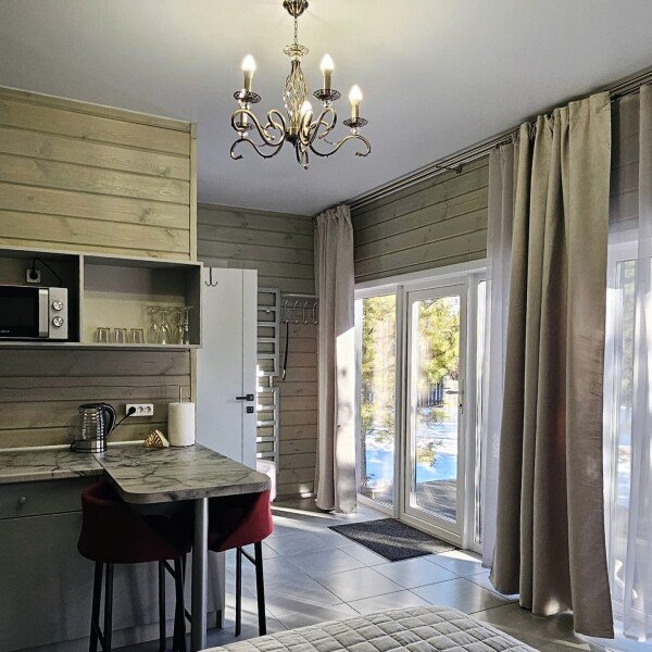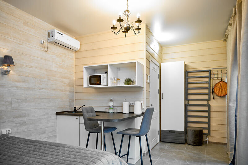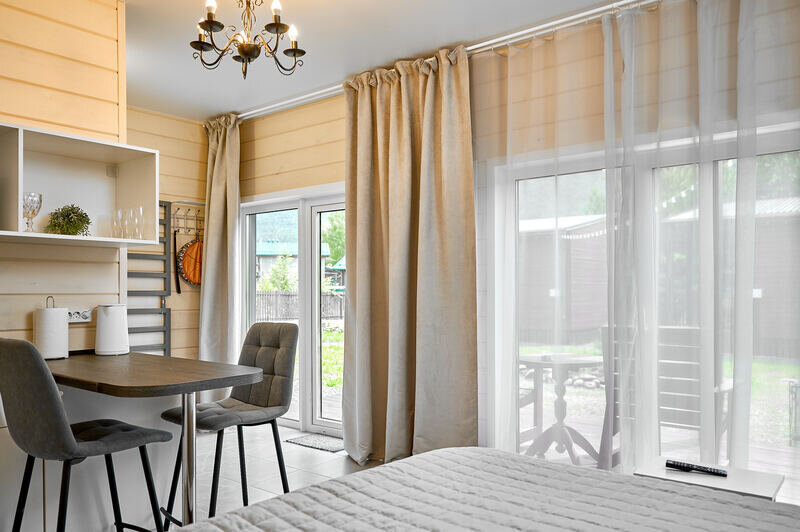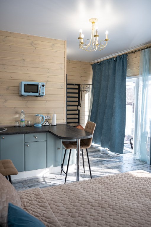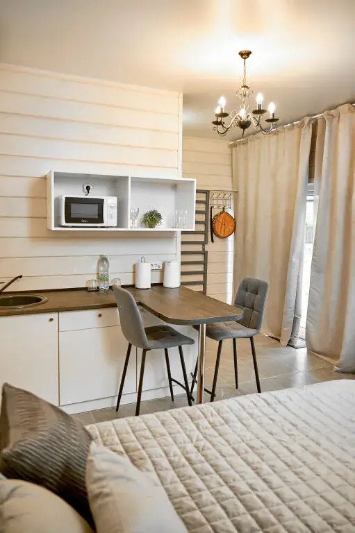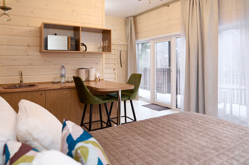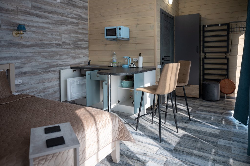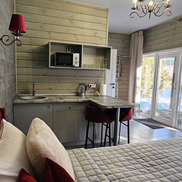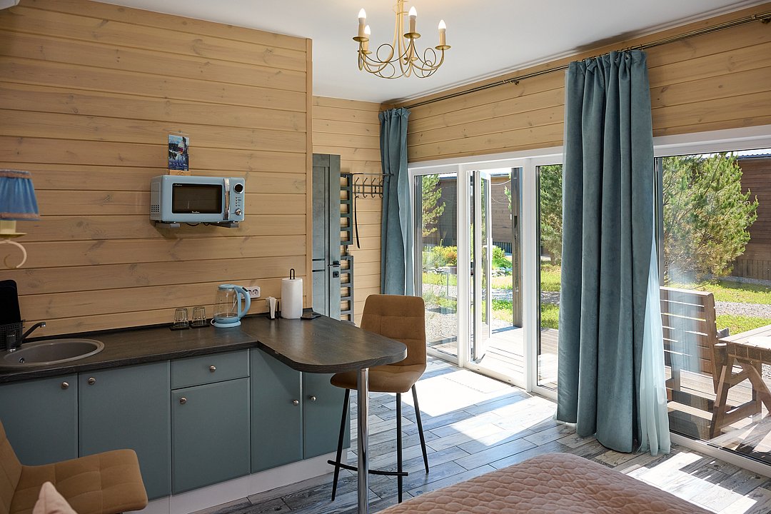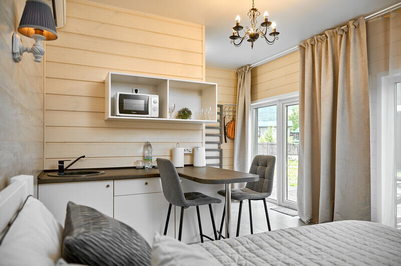 Круглогодичный отдельный дом студия 22 м, с панорамными окнами и террасой, вместит двоих (троих гостей, предоставляется евро-раскладушка) гостей.