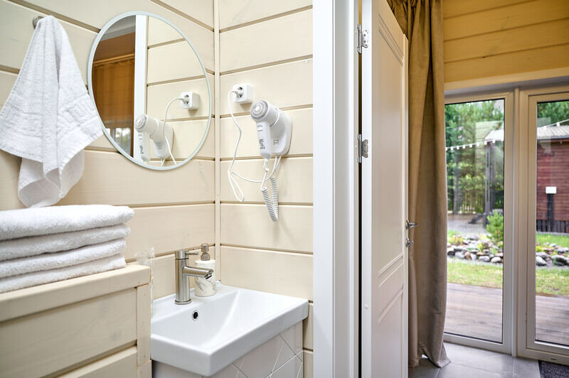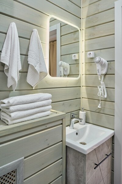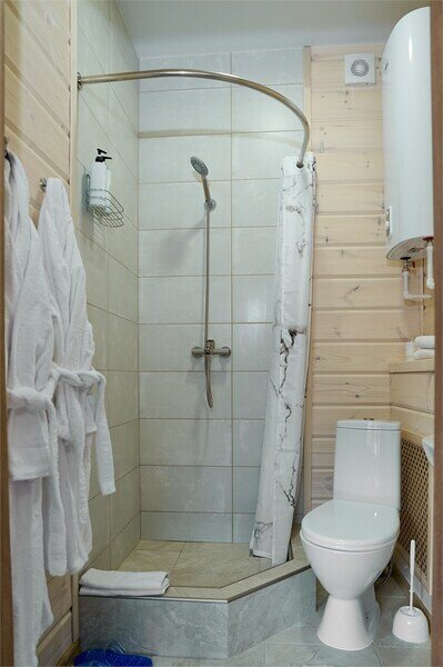 Душевая комната имеет все необходимые средства личной гигиены, а так же халаты, тапочки.