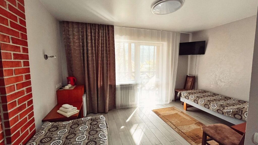 Жила в однокомнатном номере, все было прекрасно! Номер теплый, чистый, приятный уютный! Встречать оранжевый рассвет на берегу реки с кружечкой горячего кофе – отдельный вид блаженства!